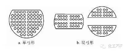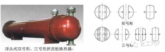 大部分換熱器都采用弓形折流板,雙弓形和三弓形折流板能使兩種換熱介質良好的進行接觸,消除換熱器的死角,以提高換熱目的,一般用于于大直徑和大流量場合。