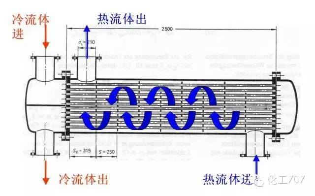 雙殼程換熱器比單殼程換熱器換熱效果要好。殼程流體只需要較小的流速就可以形成湍流,從而達到提高了殼程流體的對流傳熱系數的目的。只是由于其壓降比同換熱面積的換熱器要大得多,所以在對壓降要求較為嚴格的場合較少使用。