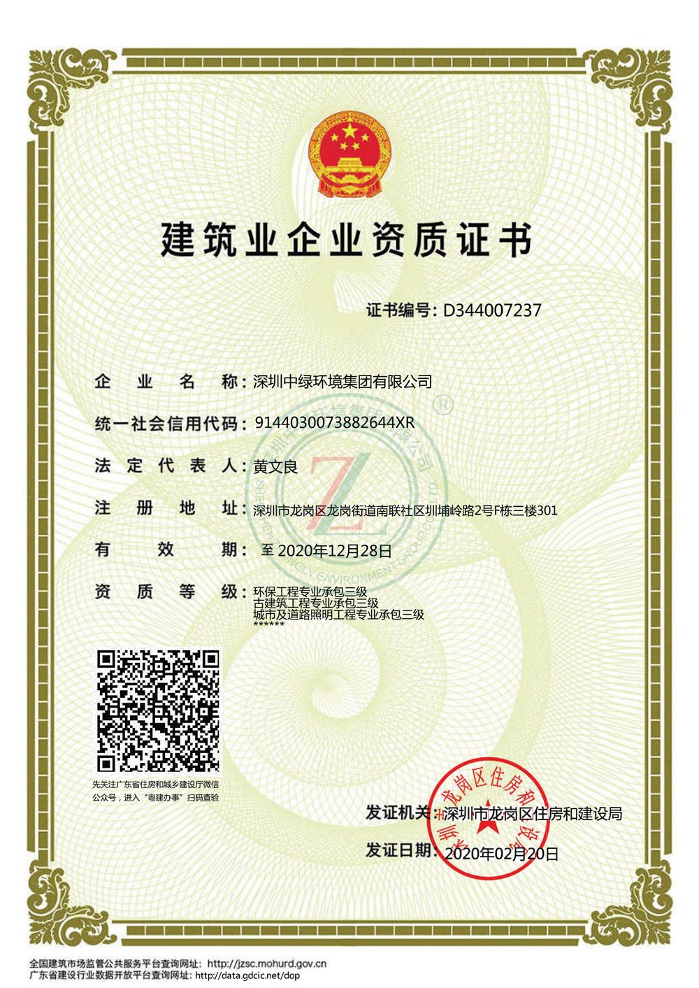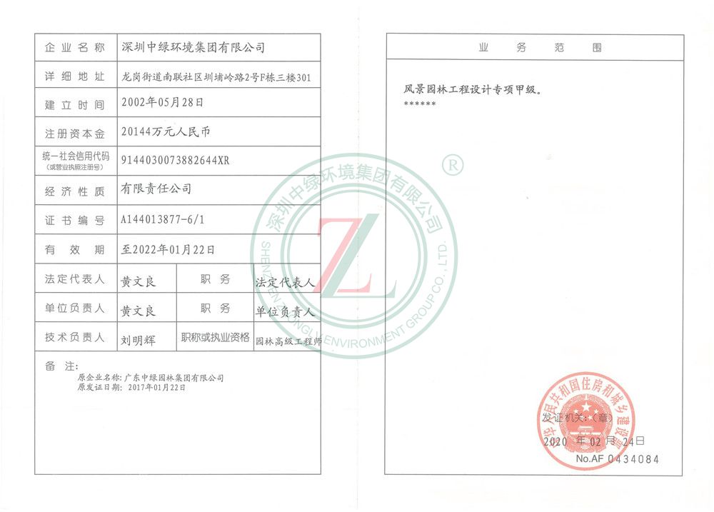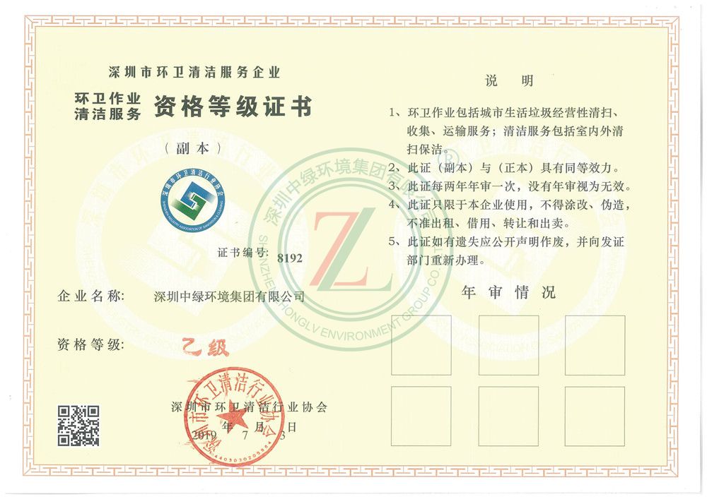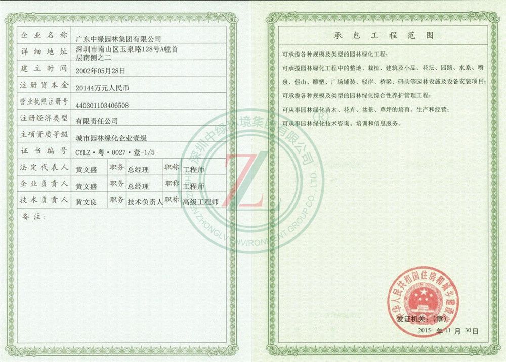 深圳中綠環境集團有限公司 - 走進中綠 - 資質證書