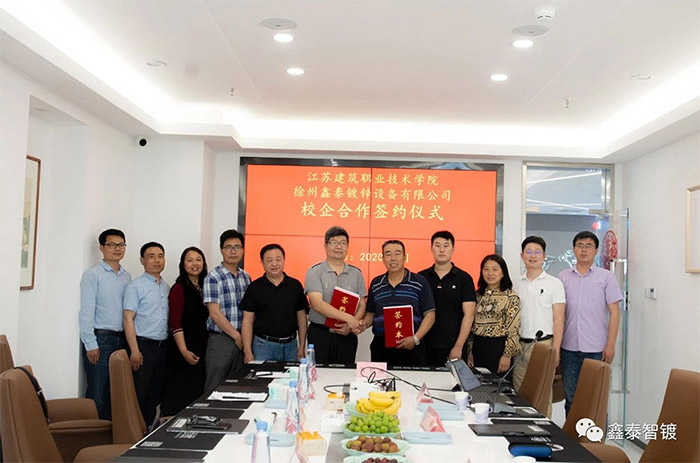 26 мая компания Xuzhou Xintai оцинкованное оборудование Co., Ltd. и Цзянсуский инженерный профессионально - технический институт в штаб - квартире Xintai провели « церемонию подписания стратегического сотрудничества по подготовке кадров для совместной индустрии горячего цинкования».